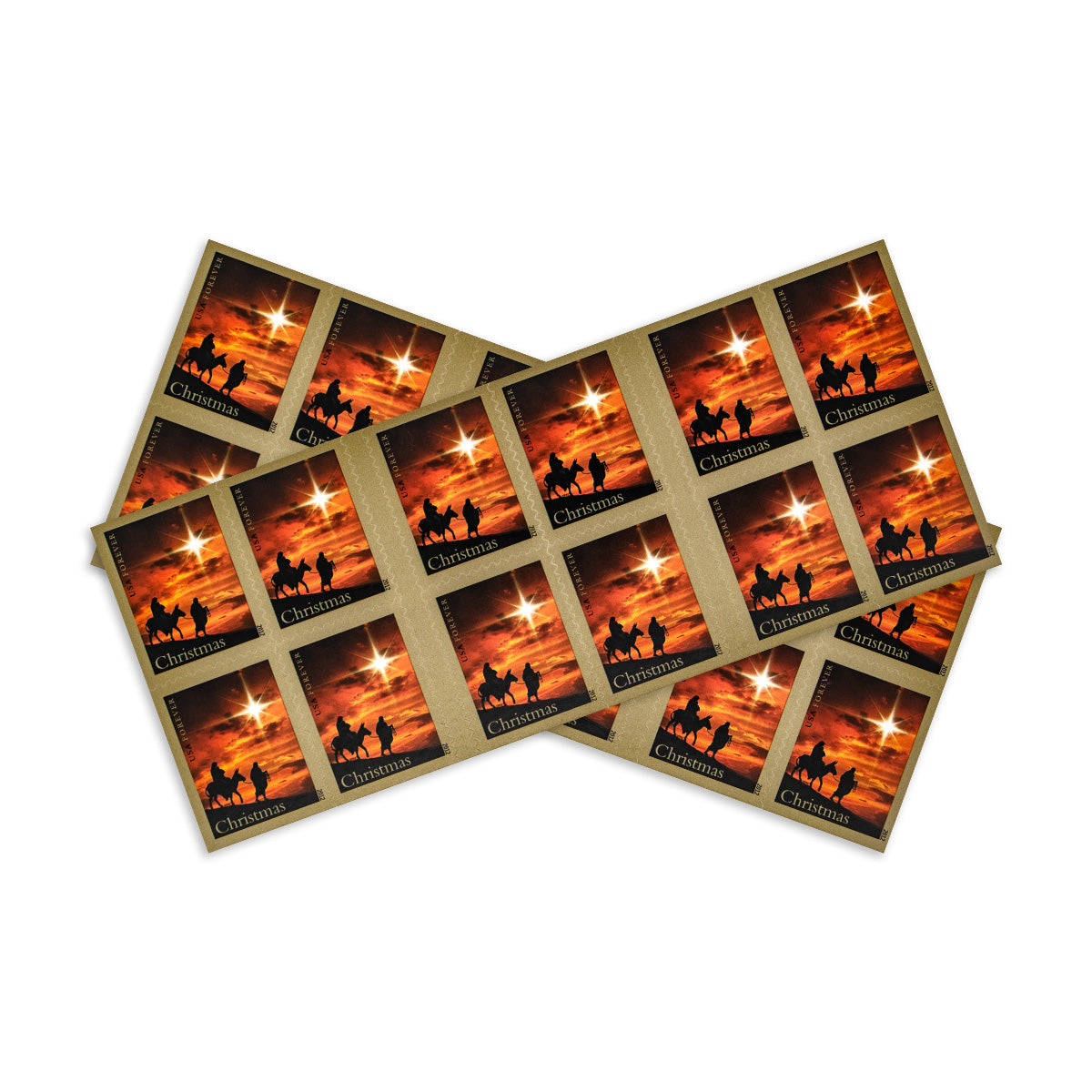 Art director William Gicker. designer Greg Breeding. and artist Nancy Stahl created the stamp's artwork. It features Joseph leading a donkey carrying Mary and baby Jesus under a shining star.