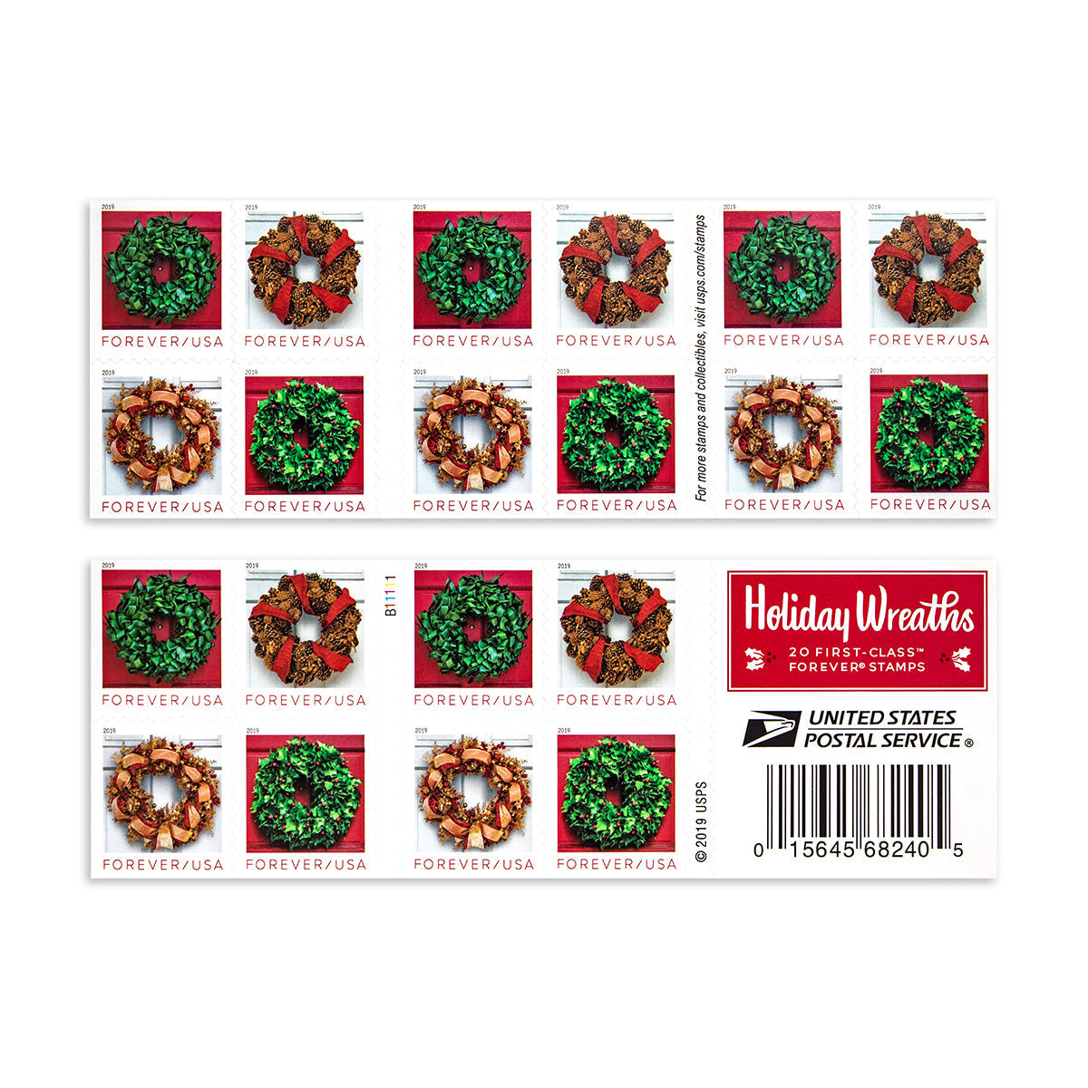 2019 Christmas Seasonal Holiday Wreaths Forever First Class Postage Stamps