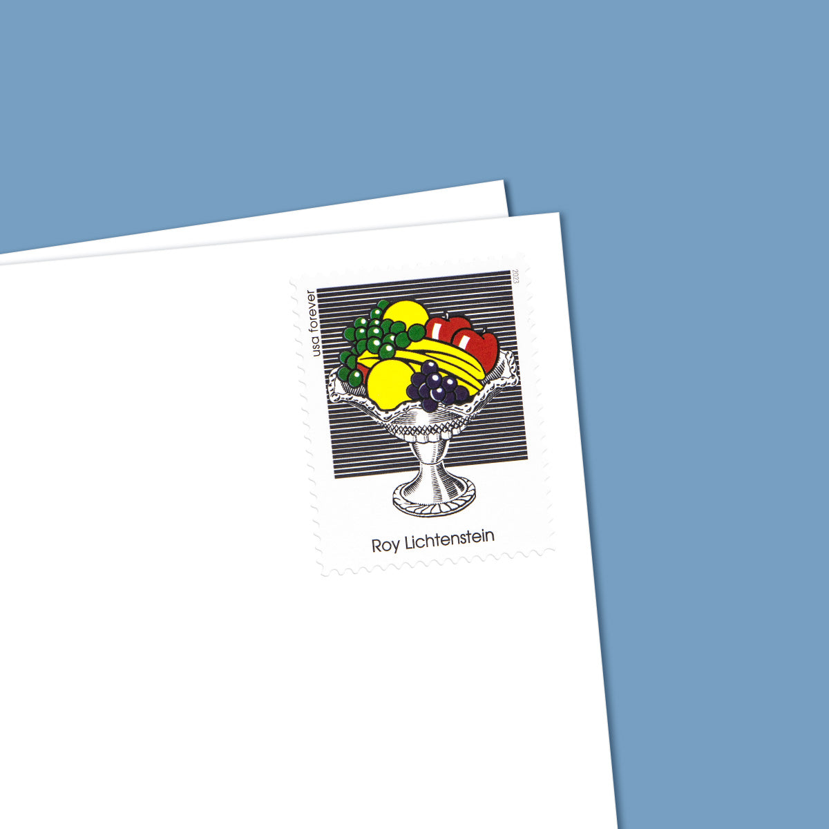 Roy Lichtenstein is honored with a stamp featuring his renowned work ¡°Still Life with Crystal Bowl¡± (1972). The issuance took place on April 24. 2023. at the Whitney Museum of American Art in NYC. The set comprises five stamps highlighting different pieces by Lichtenstein. His experimental landscapes. influenced by comic art. showcase his distinctive Pop Art style. These landscapes. whether representational or abstract. demonstrate Lichtenstein's innovative use of materials. In his later years. he revisited landscapes. concentrating on classical Chinese landscapes using halftone dots.